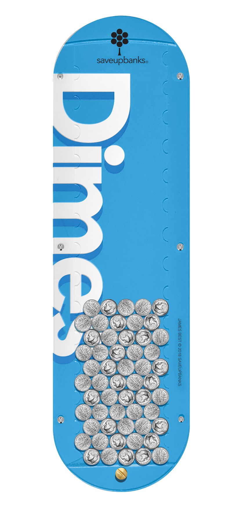 Dime Savings Bank. Wall mountable, great gift idea. Nicely designed, blue and white design. Dimes form a stacking formation when saving making it easy to view and count. Collect the entire coin set and save. Collect the coin set and save.