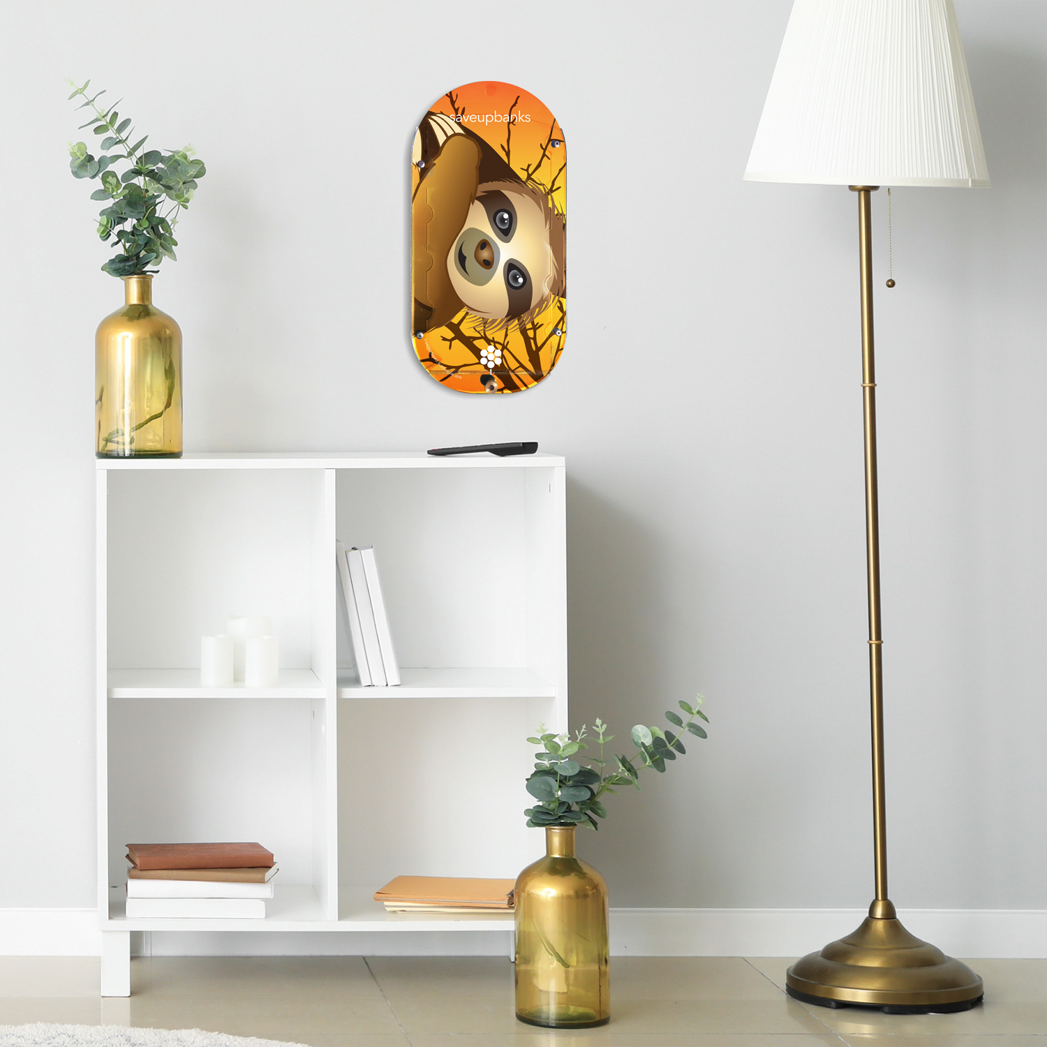 Simply use a push-pin to mount your bank and watch your money grow. Insert the push-pin in a wall, or sturdy surface like wood. Finally, start saving by popping spare change into this adorable sloth coin bank. Hand crafted in the USA with clear plastic casing. All sloths are built for life in the treetops. They spend nearly all of their time aloft, hanging from branches with a powerful grip aided by their long claws